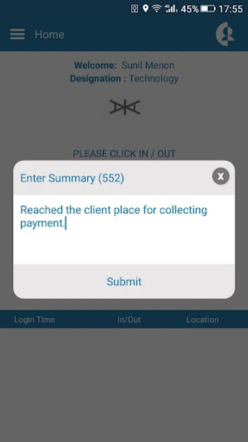 - Check-in and Check-out from client visit