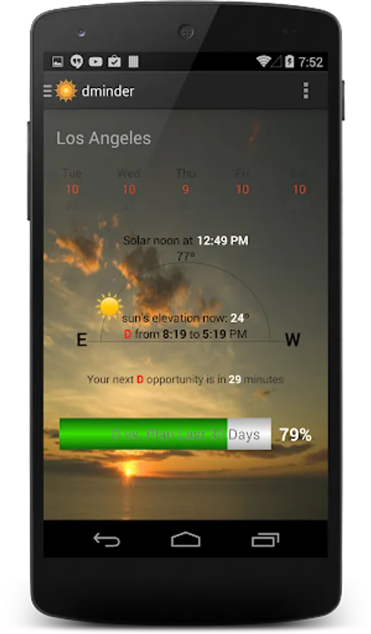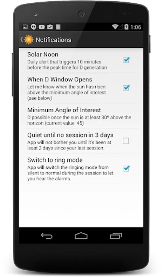 Comprehensive Vitamin D tracking app. Uses the GPS in your phone to figure out where you are on the planet then computes when you can get D, how much of it you can make, gives you a timer and in the paid version the ability to manage history and have the app estimate your levels on an ongoing basis.