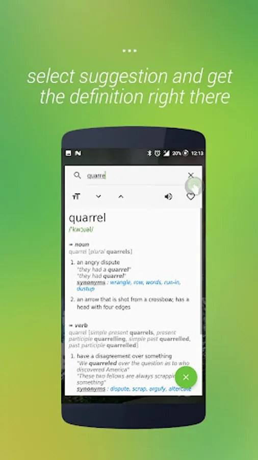 Different ways to get the definition using onTouch English Dictionary:
