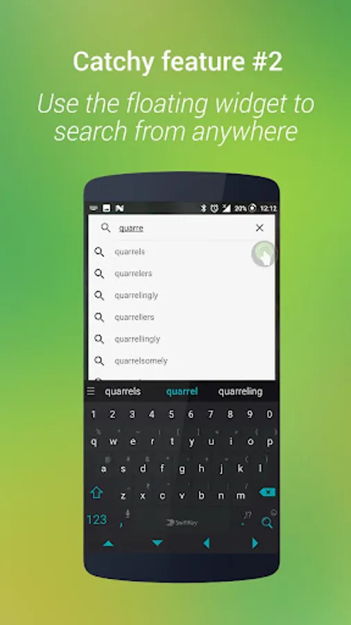 2. Click on the floating icon and type the word in the Floating Search Widget.