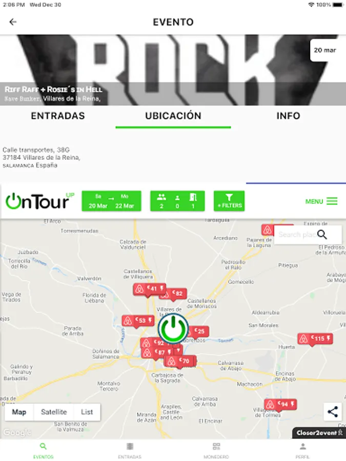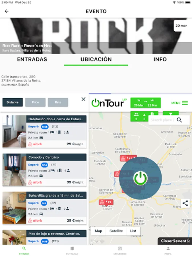 You can find out about the hotels and airbnb near the event, and book directly with one click. Without added costs, and with all the necessary information to know everything important (average mark, capacity, price, location, distance to the event, area, etc.).