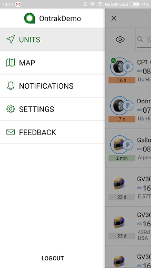 Unit list management. Get all the necessary information on movement and ignition state, data actuality and unit location in real time.