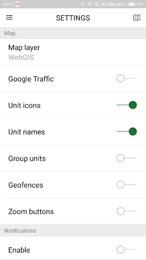 Map mode. Access units, geofences, tracks and event markers on the map with the option to detect your own location.
