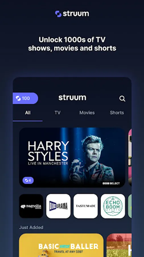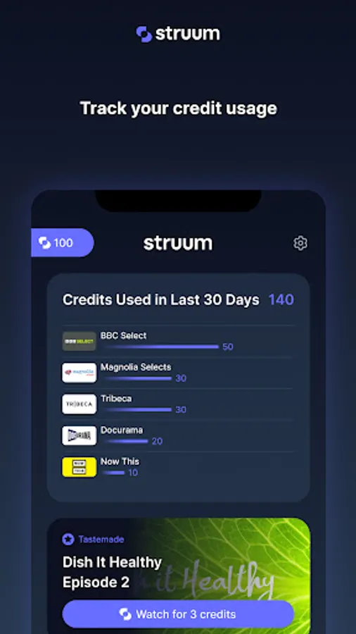 With Struum, you have access to over 50+ streaming services with one subscription and no ads. You can seamlessly search and discover all types of genres and content. Use credits to watch beloved TV shows, blockbusters, renowned documentaries, true-crime, indie and classic films, cooking series, LGBTQ+ -- and that's just the beginning!