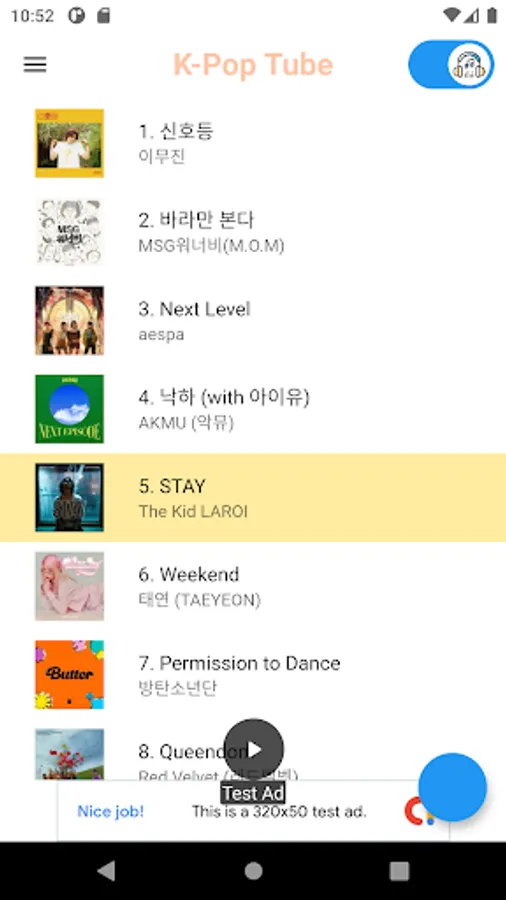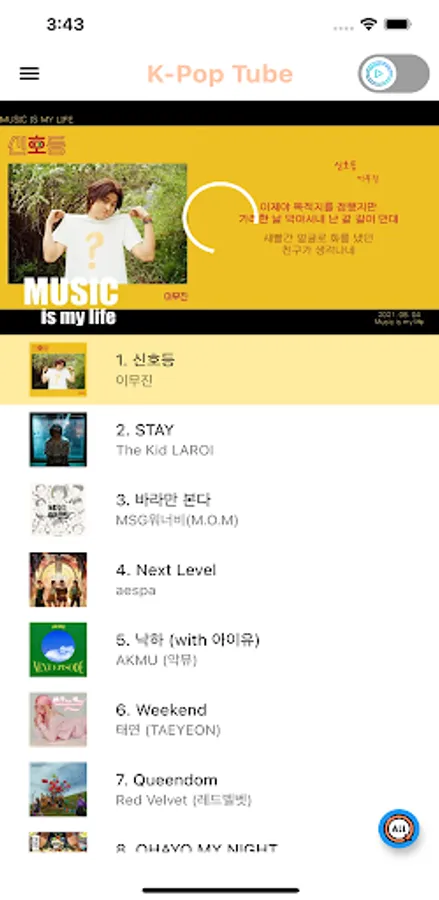 You can provide a list of songs and play them by reflecting the ranking list of currently popular songs in Korea.
