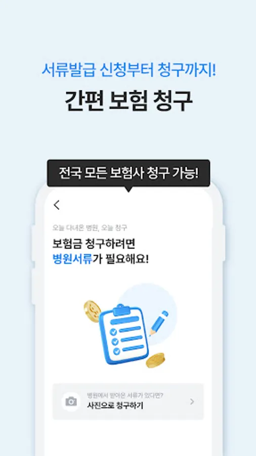 - Even if you live in another area, you can receive a hospital certificate through mobile and solve insurance claims at once!