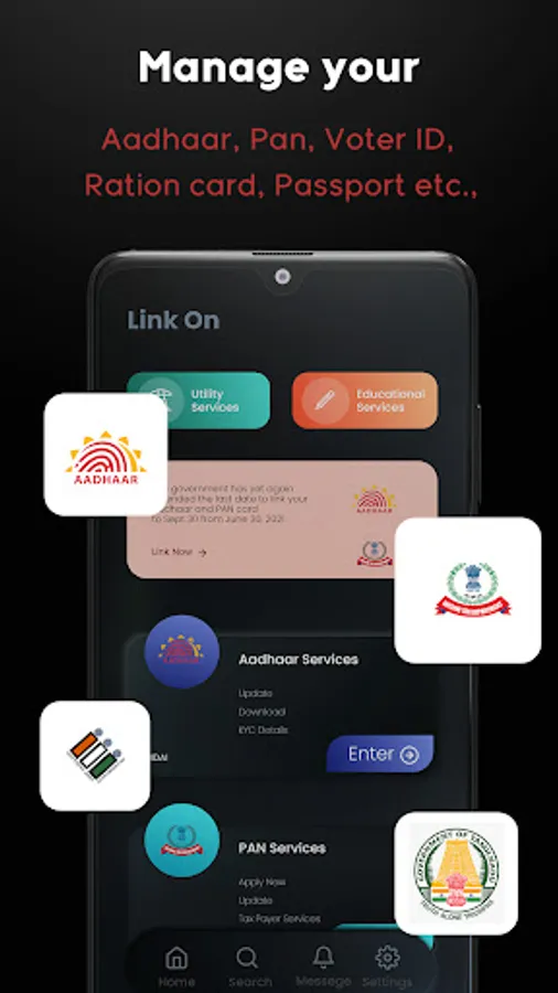 Apart from these it also includes mandatory documents services such as Aadhar, PAN, Voter Id etc.
