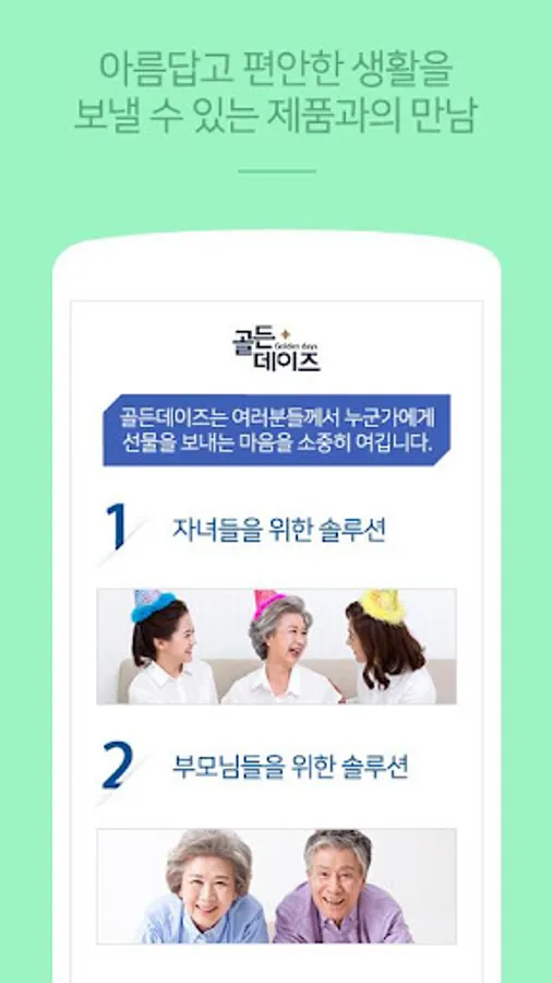 'Golden Days' can help you find the products you want through intuitively categorized categories such as parent helper, direct import, convenience/safety, live conditions, exercise/health, and well-being food.