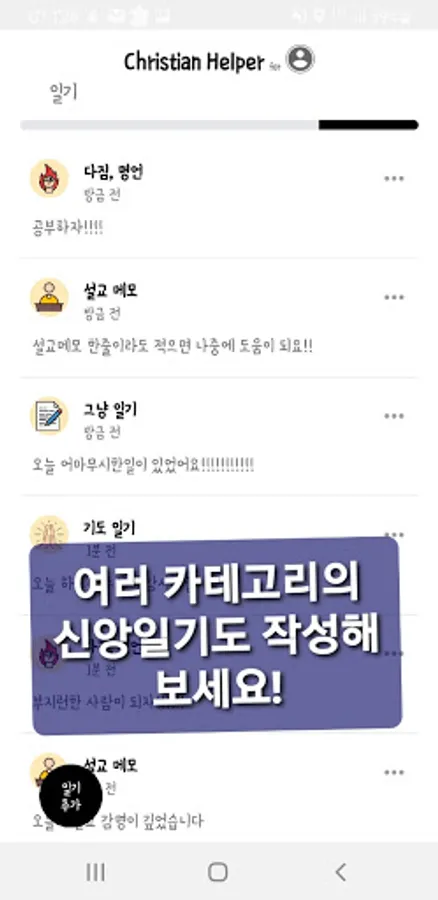 * You can write a diary of faith in various categories such as vows, sayings, sermons, prayers, words, and what happened.