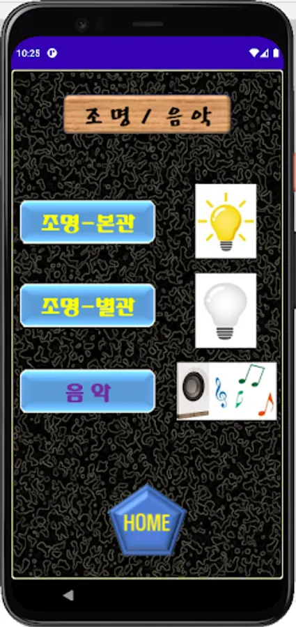 Two lighting controls and music broadcasting speakers can be turned on or off.