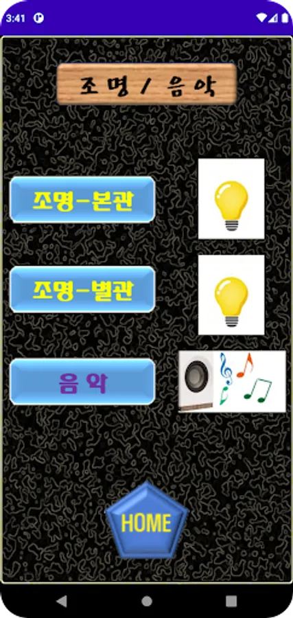 Two lighting controls and music broadcasting speakers can be turned on or off.