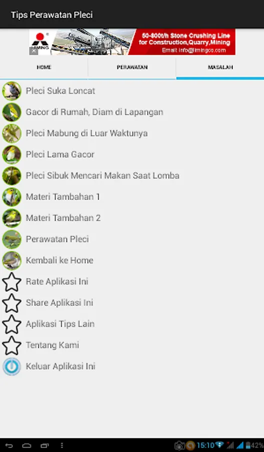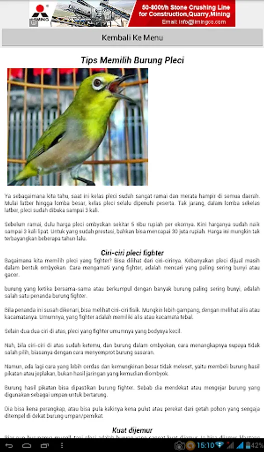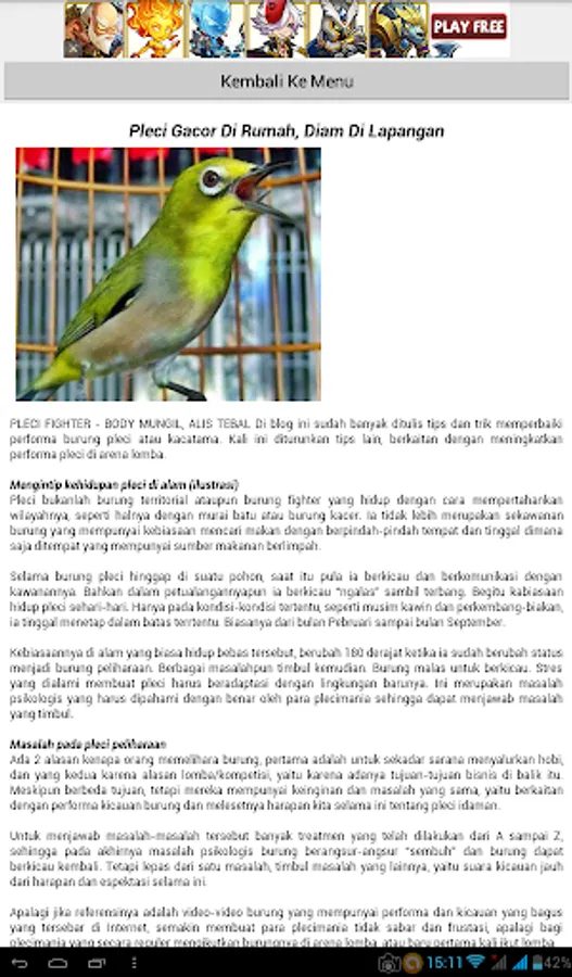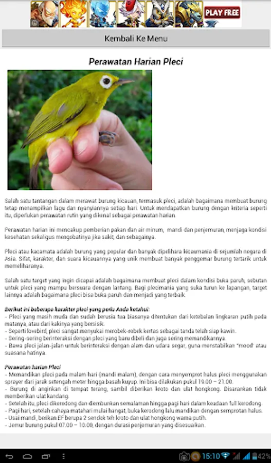 For bird enthusiasts Pleci, can download this application as a reference to its Pleci bird care,