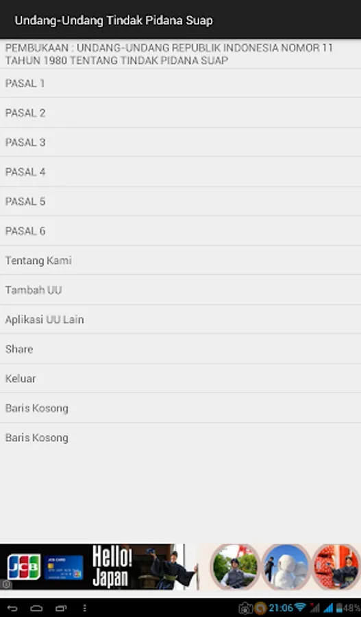 "OPENING : LAW OF THE REPUBLIC OF INDONESIA NUMBER 11 YEAR 1980 CONCERNING THE CRIMINAL ACT OF BRIBERY",