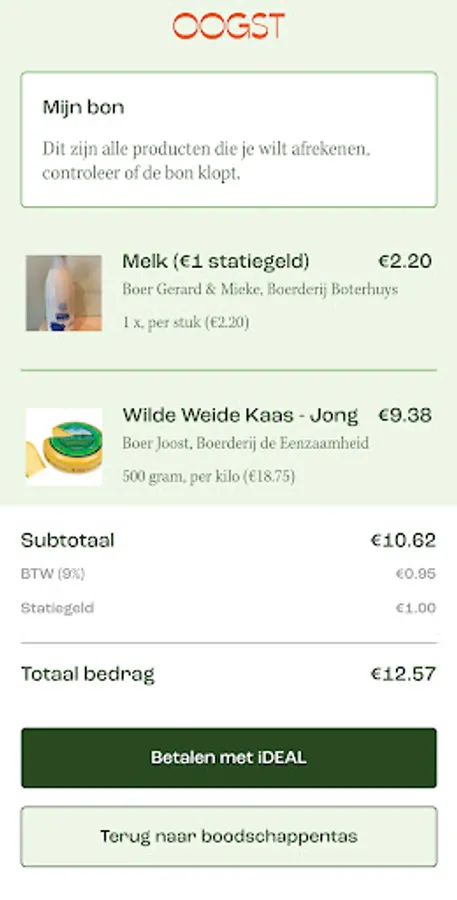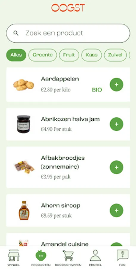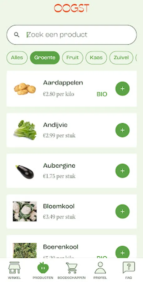 In the app you can see where there are already Oogst stores in the Netherlands. For each store you can see which farmers deliver there, and a short description of how they work. All products that you will find in the store are also described; product info, price and from which farmer. Will we see you soon?