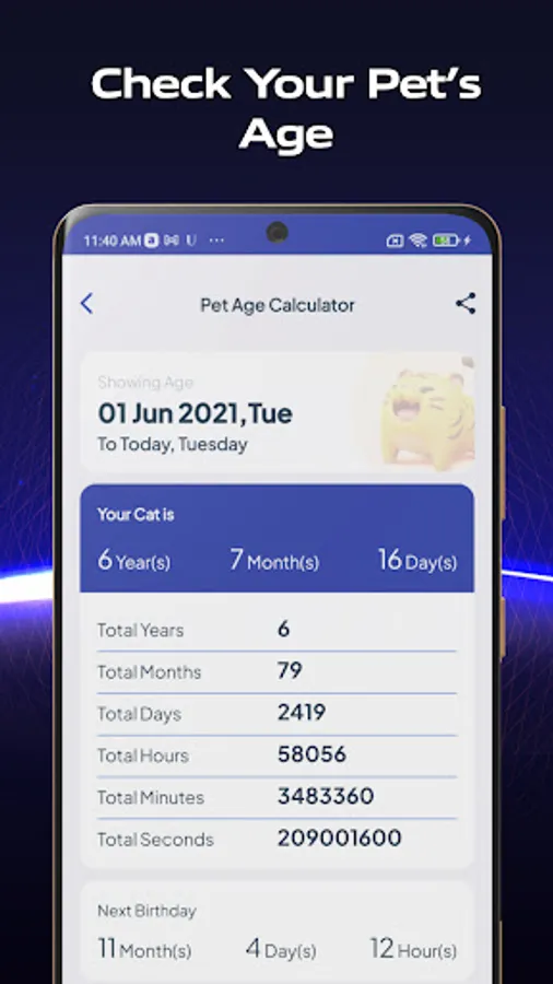 ★ Pet age calculator: This will let you calculate the age of your pet or your friend’s pet, basically any pet animal’s age.