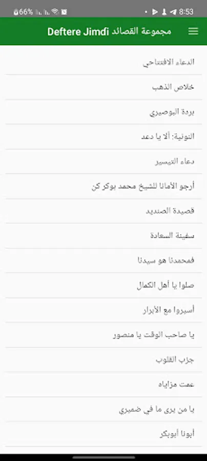 In this application you will find a collection of poems composed by the sheikhs of Senegal and others, it is a wonderful and clear application, and it works without the Internet. In addition to Arabic poems, you will find poems in local languages. The application is still in the process of testing and debugging. You can help us by commenting your comments about it.