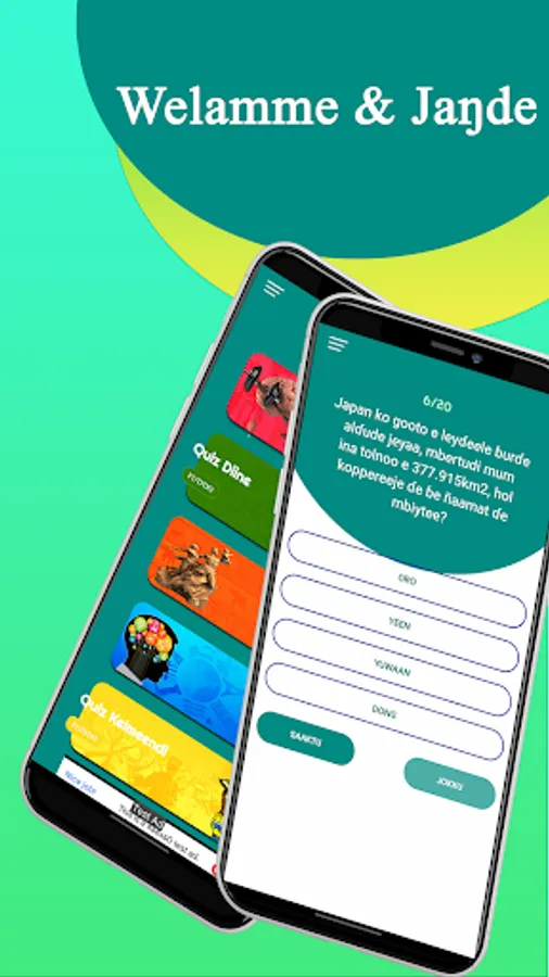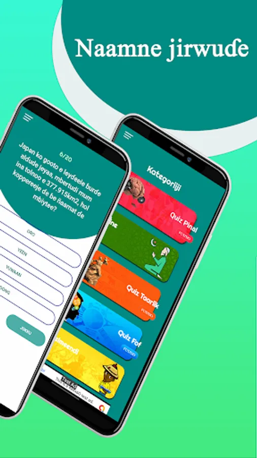 Quiz Pulaar Pro ko aplikaasiyoŋ jirwuɗo jowitiiɗo e fannuuji keewɗi haa teeŋti noon e: