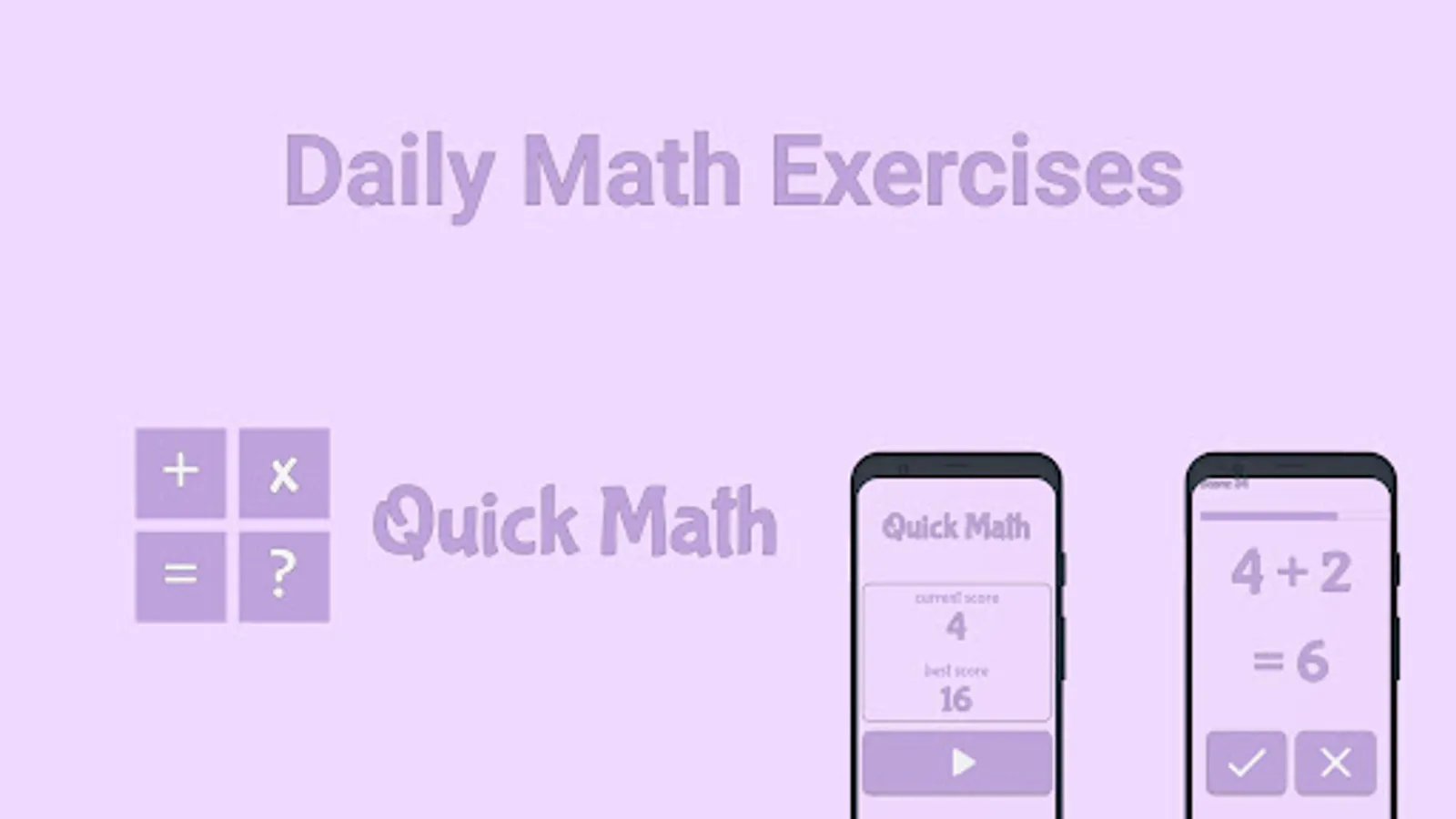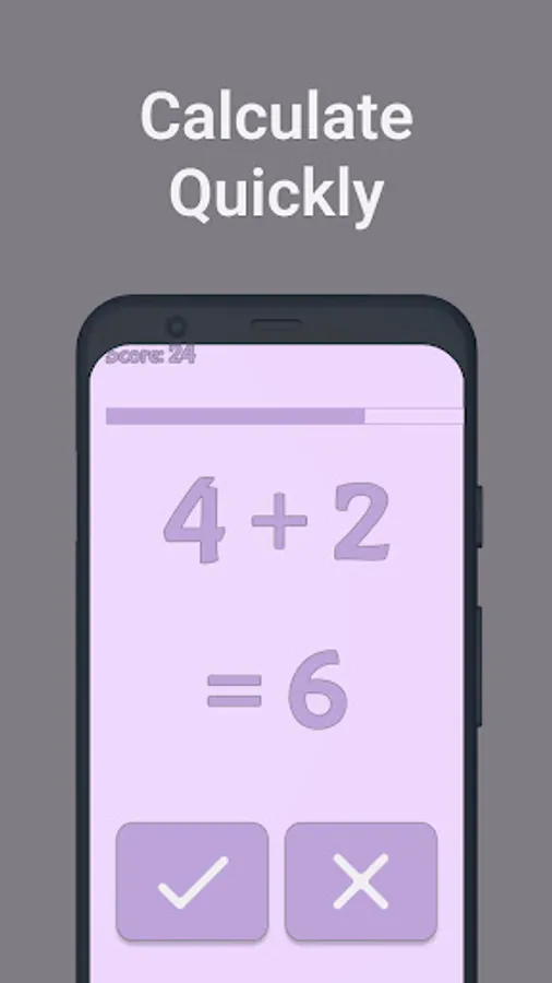Quick Math will help you improve your math skills and speed. Random questions will present to you for you to evaluate as true or false. For you or or children Quick Math can improve mental calculation capacity with fun. If you ready to become a math genius download now!