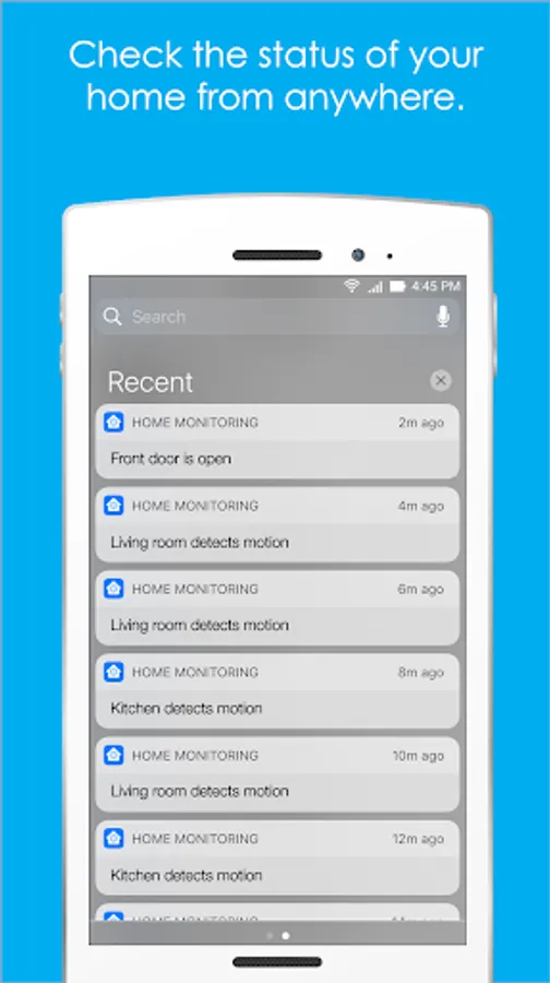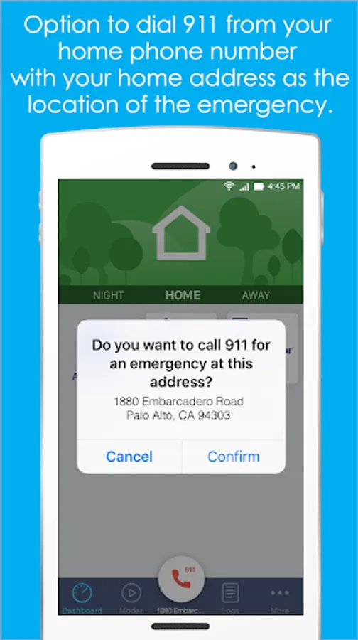 * Receive alerts when activity is detected with the option to remotely call 911 from your home phone number using your home address as the location of the emergency.