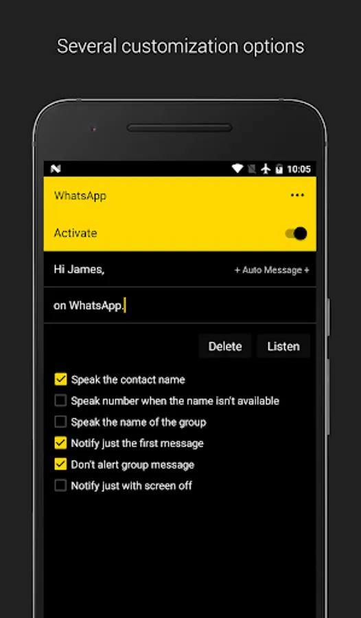 You can customize the notifications for each app, that is, what AlertBee! will speak, you choose. Also, there are preset options for customization of the message.