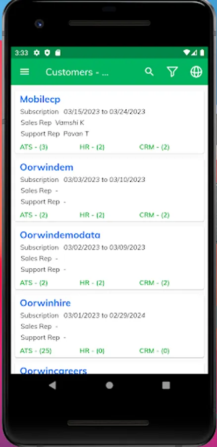 Our mobile application is exclusively designed for Oorwin users, allowing them to access important client information and subscription details from anywhere, anytime. Users can simply login with their assigned IDs and access a range of features and functionalities that are tailored to their specific needs.With this app, users can easily browse through client information and manage their subscriptions with ease. Whether you are on the go or at your desk, all the information you need is just a tap away.By using our Oorwin internal app, you can easily track the progress of your clients, view their subscription status, and access any other relevant details. This can be particularly helpful for professionals who are constantly on the move and need quick and easy access to information.Our app is designed to be user-friendly and intuitive, ensuring that you can easily navigate through its features and functionalities. Whether you are a seasoned Oorwin user or just starting out, our app is sure to make your life easier and more productive. So why wait? Download our app today and see for yourself how easy it can be to manage your clients and subscriptions on the go!