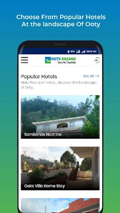 Discover the great deals, compare hotel prices & save money on your next holiday or trip – Save more even at your vacation time with Ooty Dreams. Get savings when you search hotel with Ooty Dreams, And, Enjoy great experiences with an hassle-free Ooty Dreams App. Download the most user-friendly Hotel Booking App.