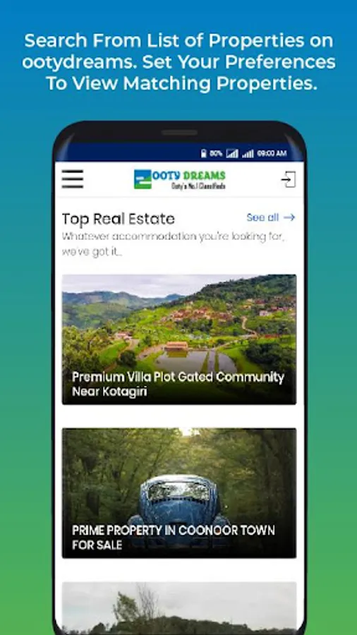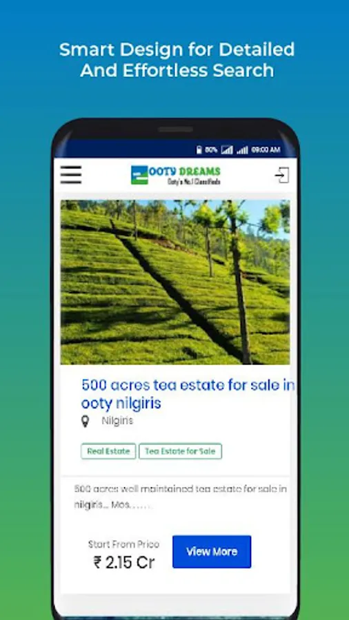 Looking to Sell or Buy or Rent Properties in Nilgris? Ooty Dreams App brings the perfect property search experience to your fingertips with it’s all-in-one real estate mobile app. Ooty Dreams mobile app will help you with all your real estate needs right from Property search, research till home loans & beyond.