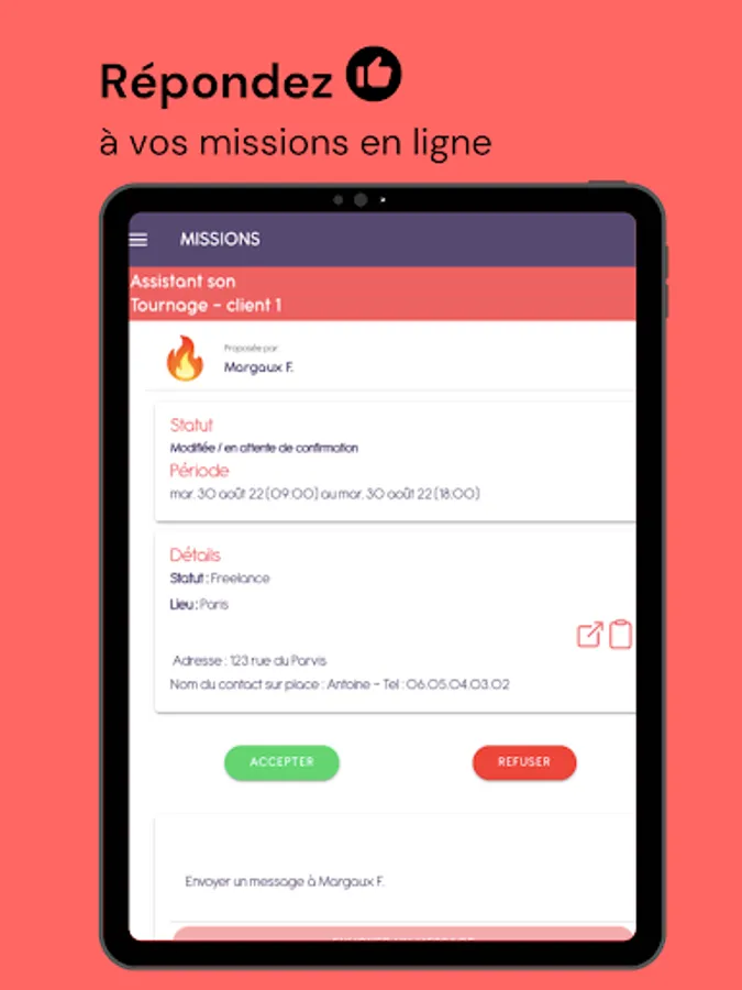 With ooviiz, you have the possibility to stay connected wherever you are and to be informed of your new mission proposals in real time.