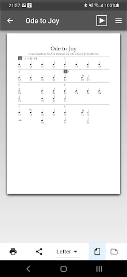 Since the notes are displayed as those used in general score, it is easy to read even for those who are accustomed to sheet music.