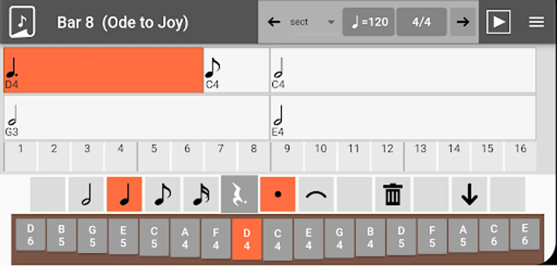 You can also play the created score with the app, and can also play it as a simple instrument.
