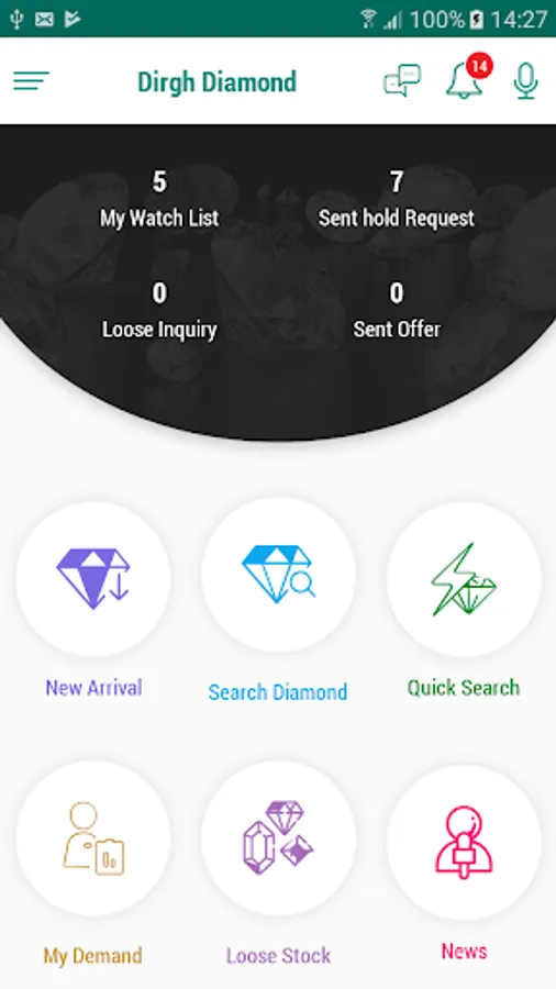 DirghDiamond New version Release With New Design And New Features.This App WIth New Concept And New Functionality.In This app search Stone Category is divides in search_all_stone,New arrival stone,Special Deal Stone And Exhibiton Stone.there are two view in this app with listview and Gridview and we can download pdf and excel file of selected Stone and share with friend or etcYou Can Also Show Your History Search.