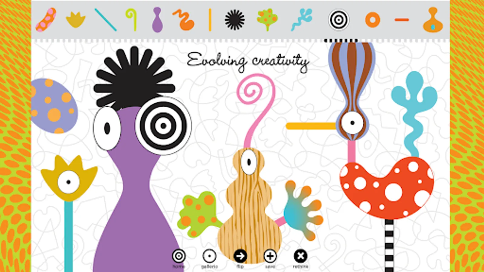 Immerse yourself in a digital art space that inspires spontaneity and imagination with ZoLO•ooLo, a wildly creative and inventive app that is gender neutral, for all ages, and is designed to take creativity and open-ended play to a new level. ZoLO•ooLo invites you to create characters and abstract constructions of your own imagination, style, and attitude. Like the original 3-dimensional ZoLO playsculpture toy, ZoLO•ooLo is an educational stimulator, an imagination booster, an inspiring way to introduce basic design into your every day with a wide palette of colors, variety of shapes, and patterns. It’s everything you can imagine!