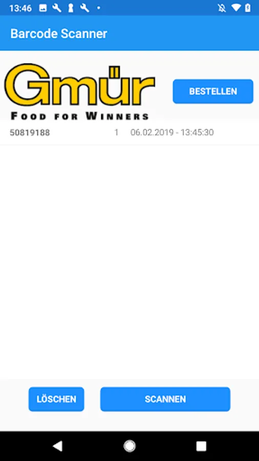 With this application, barcodes of items from Gmür's shop can be scanned and ordered directly.