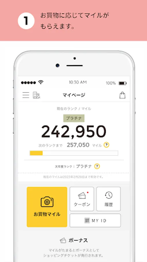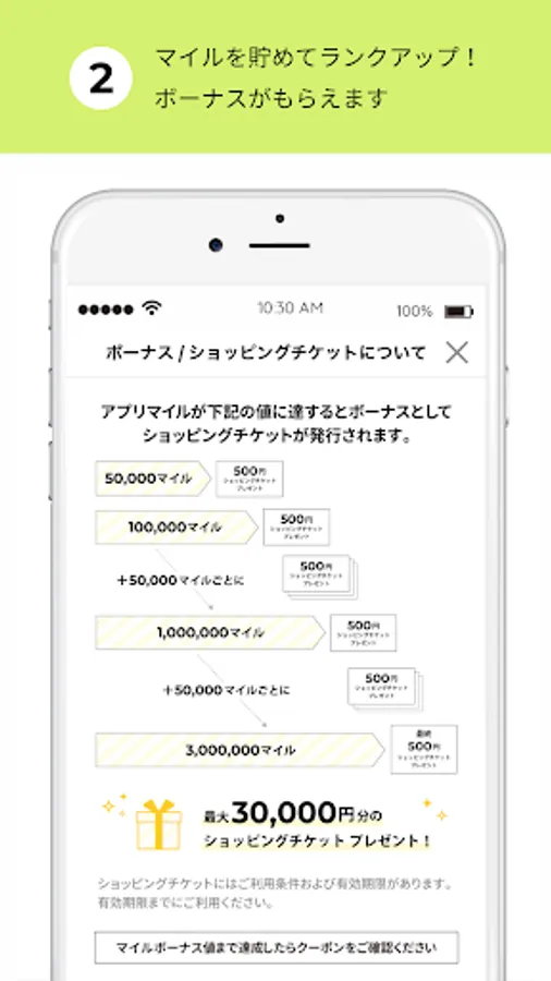 ■If you save application miles, your membership rank will increase. When you reach a certain number of miles, you will receive a shopping ticket as a mileage bonus.