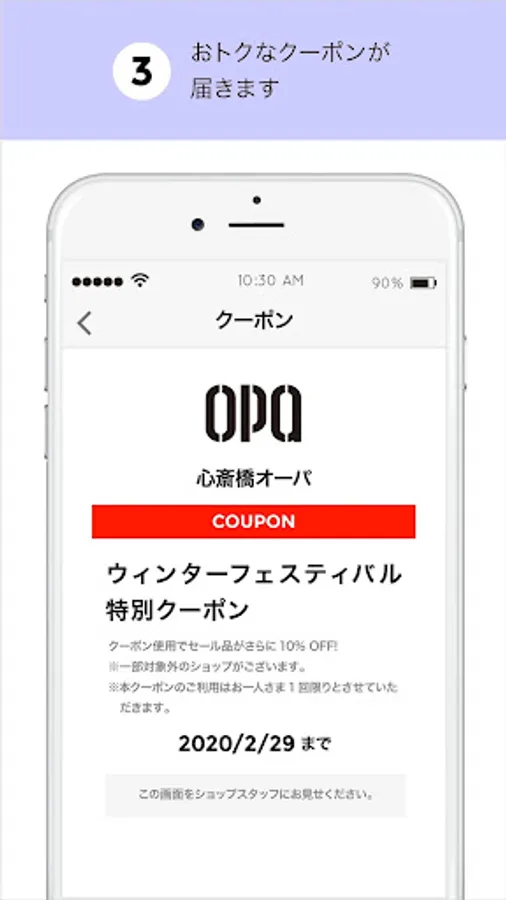 You will receive discount coupons from Opa, Vivre, and Forus stores that are registered as frequently used stores.