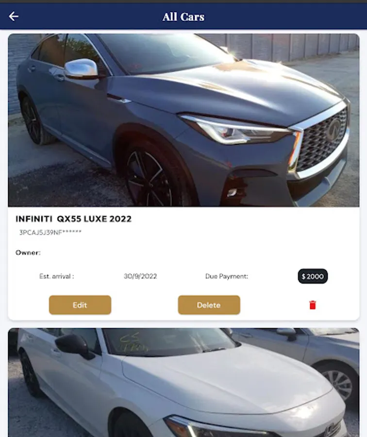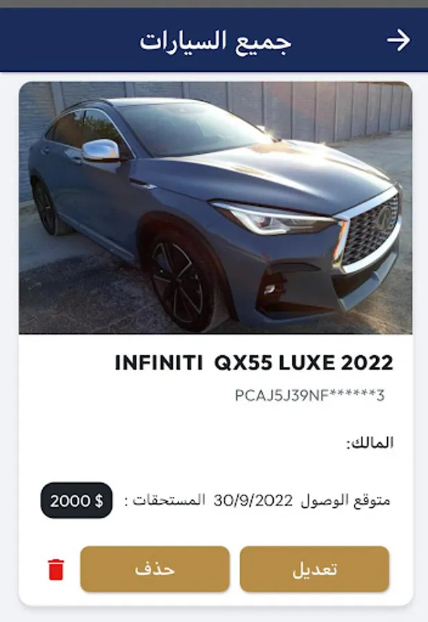 This application enables you to follow up on your cars and containers that were purchased through our offices