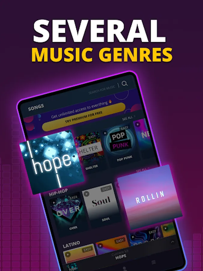 Explore Beat Lab's original songs and have fun playing on the drum pad.