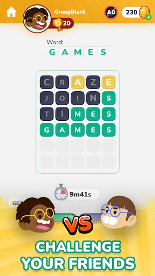 Word Pop is a word guessing puzzle. The biggest advantage over the other wordle games is that you can choose to practice your mind by yourself, play matches with other players or even send challenges to your friends. Is there any chance they can be faster than you?