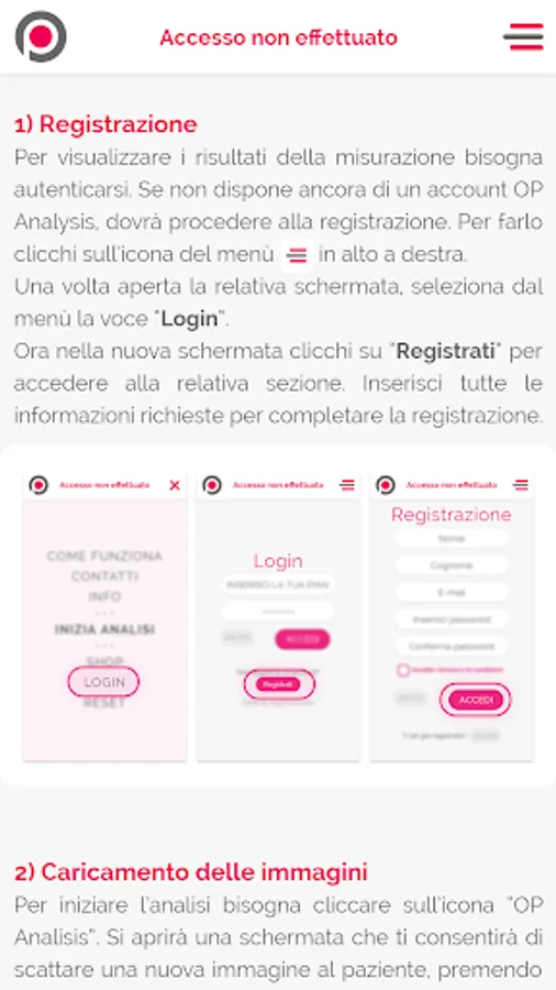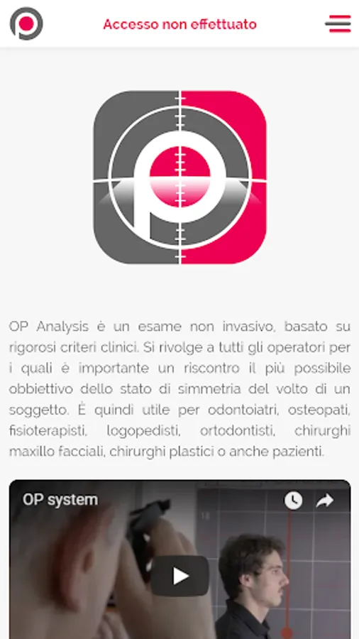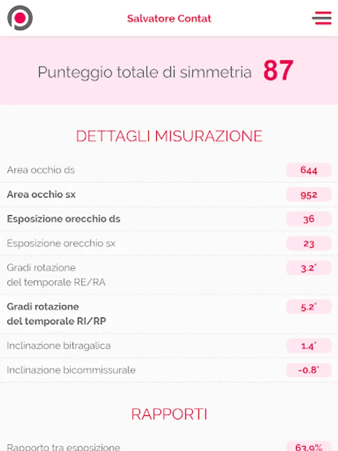 OP Analysis allows an analysis, according osteopathic criteria, the main areas of the face, by area, degrees rotation and shape of some speci fi c indicators. By relating all of these parameters is obtained an aggregate figure that, compared to 100 (= the total symmetry), in an objective manner indicates a symmetry been detected at the time of shooting. With hindsight, after therapy, orthodontic intervention, rehabilitation, osteopathic treatment, myofunctional or other, it is recommended to repeat the examination and raffrontarne results. It is thus possible to interpret both the overall figure that the individual elements in their progression or adaptation over time, real fi cando then the progress of therapies and their effect on the subject.