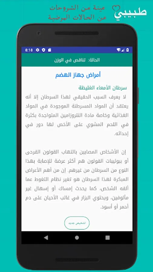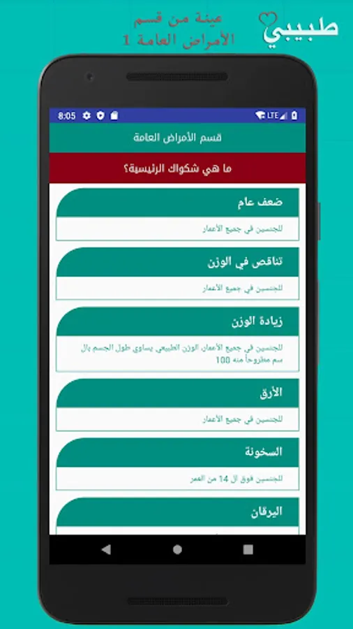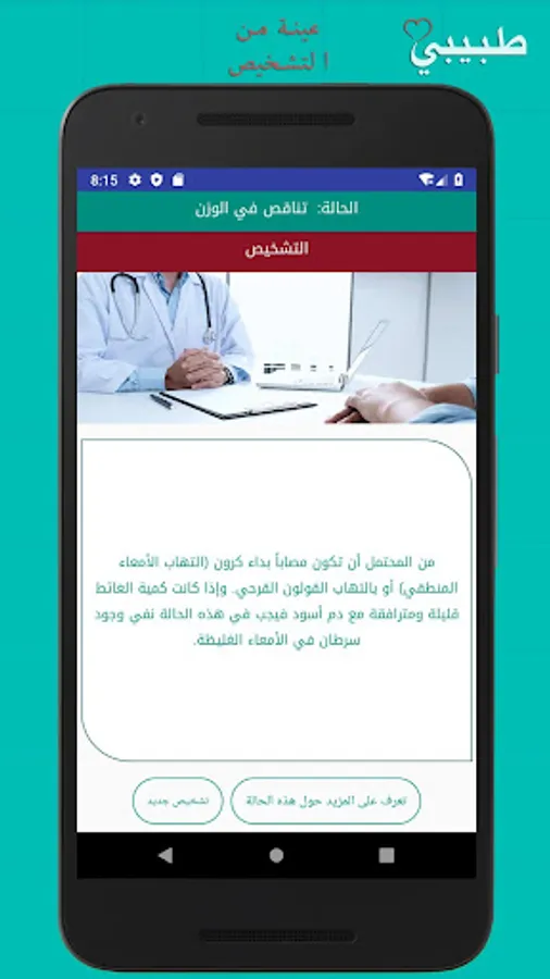 Regular medical examinations and early diagnosis are among the priorities and necessities of maintaining our health in order to live a happy life, and to take this point in mind we bring you the first Arab medical application that provides immediate diagnosis and obtaining detailed information about the disease, its symptoms, causes, effects, as well as ways of prevention and treatment without the need to Internet connection.