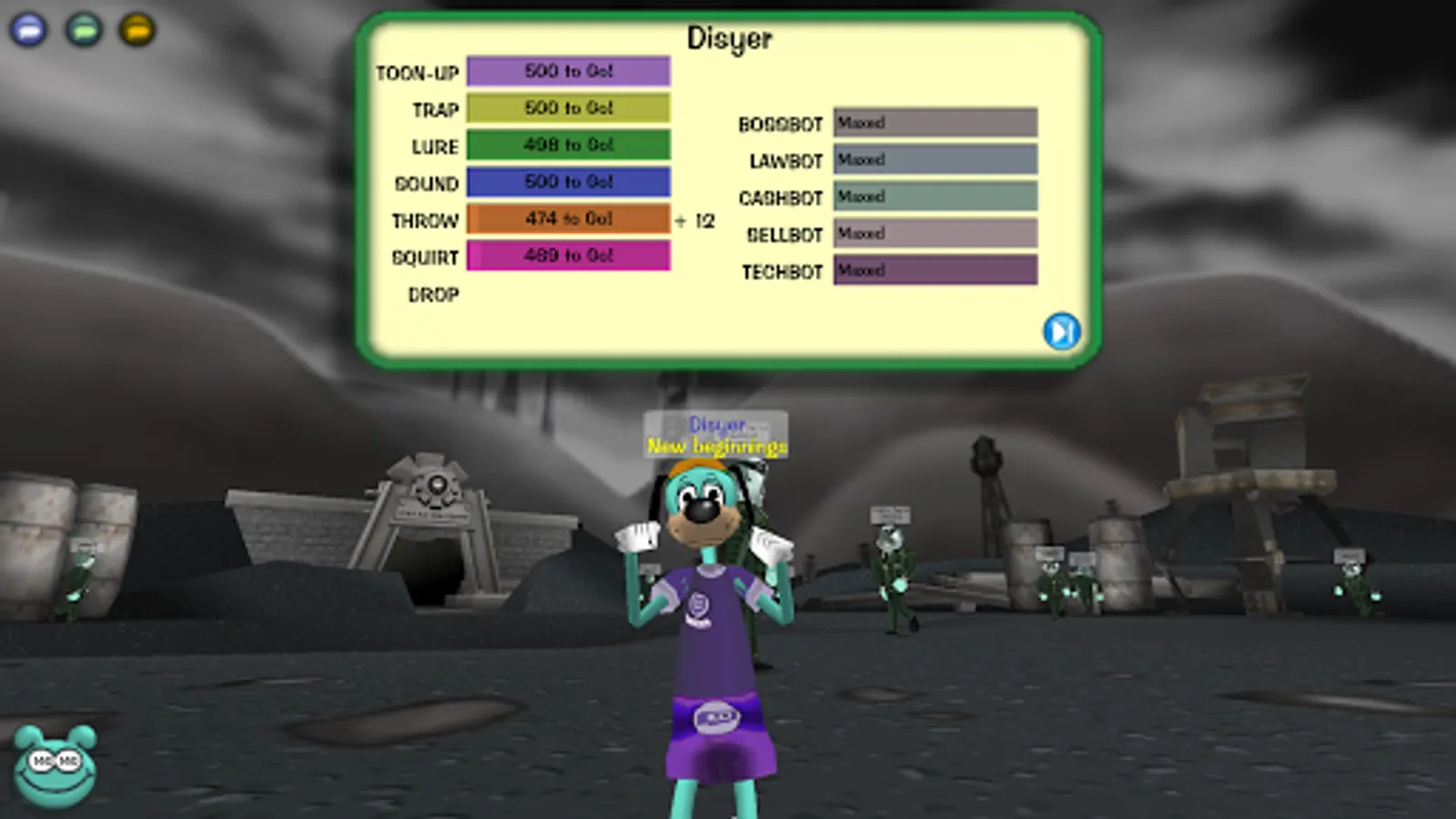 The game takes place in the fictional world of Toontown, a wacky town, inhabited by cartoon characters called Toons. They are on a mission to defeat the evil robot Cogs who are planning to take over Toontown, by turning Toon buildings into nasty Cog buildings. Fortunately, the Cogs cannot take a joke - Toons can easily defeat them with Gags, but these pesky Cogs will not let themselves be destroyed.