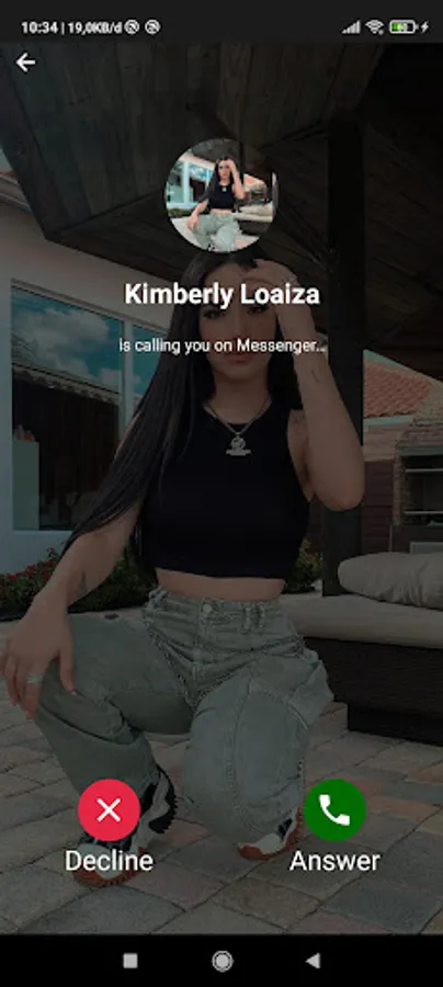 How to use : Open the Kimberly Loaiza fake call app > Select a photo > Select video call or voice call > Select Whatsapp, Facebook or Telegram > Select times > Start