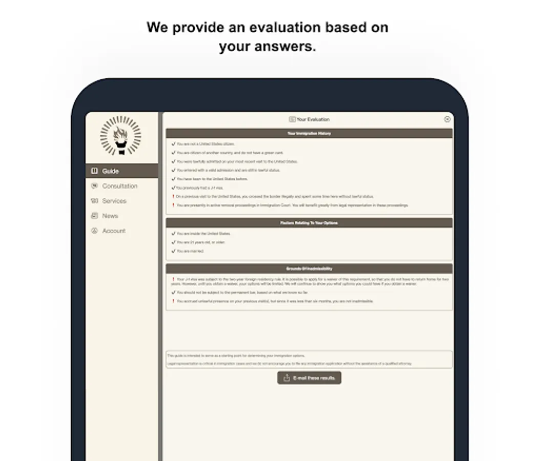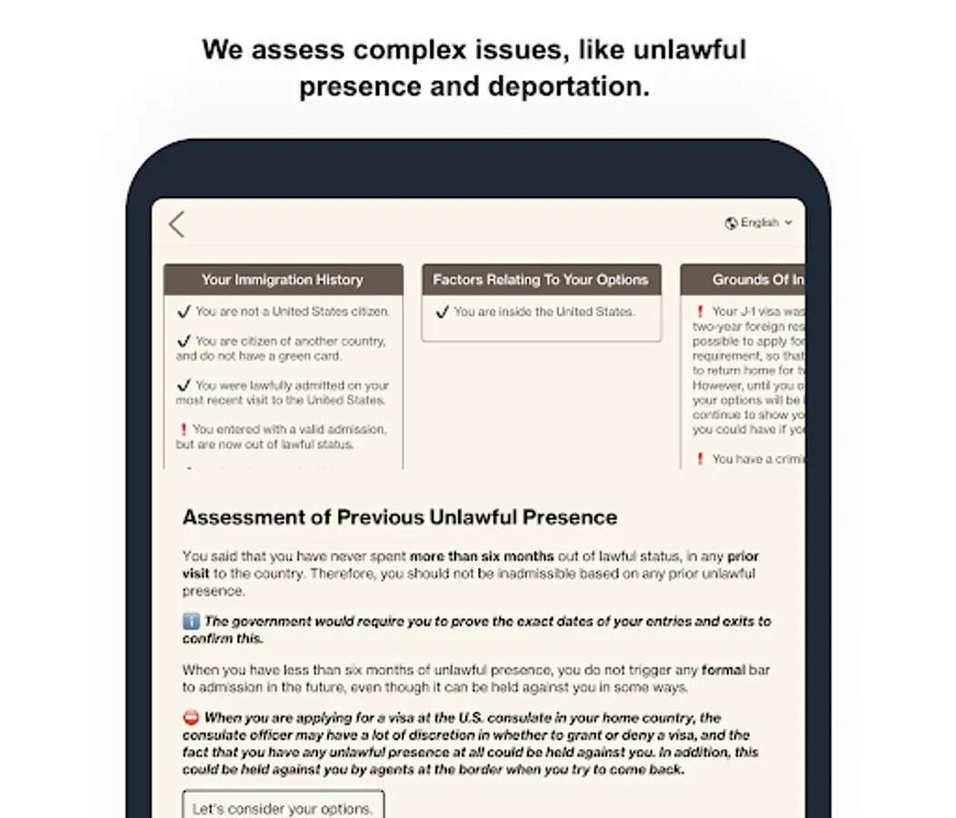 After spending more than 17 years evaluating immigration cases, we wanted to use our knowledge of immigration law to benefit people around the world. We developed a guide that offers a free, automated assessment of your immigration options.