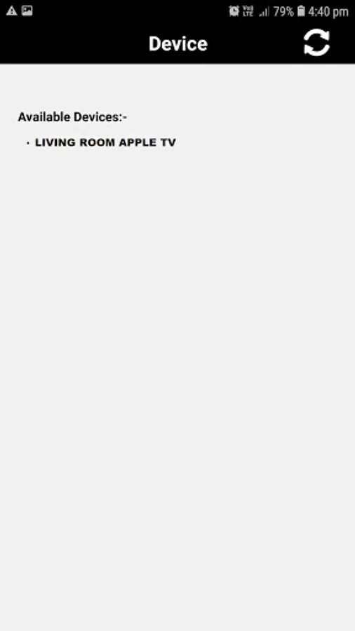 2. After selecting the device press the start button. After that app start discover the Apple TV devices in network and shows the list of the Apple TV devices on the screen of phone.