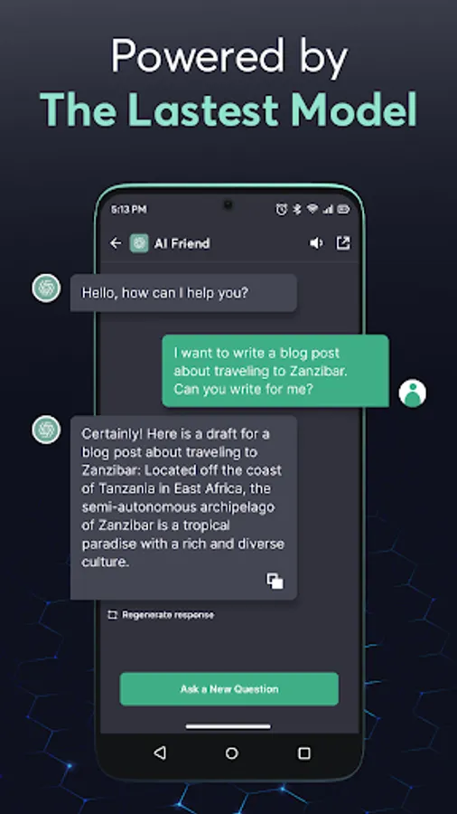 With ChatAI - AI Assistant, you'll never have to worry about slow or unhelpful chatbots again. Its advanced AI chatbot and writing assistant capabilities are designed to make your life easier and more efficient. Whether you're chatting or writing, Open Smart Chat is always ready to lend a helping hand. Give AI Chatbot a try today and see for yourself how AI Open Chat can take your communication and creativity to the next level.