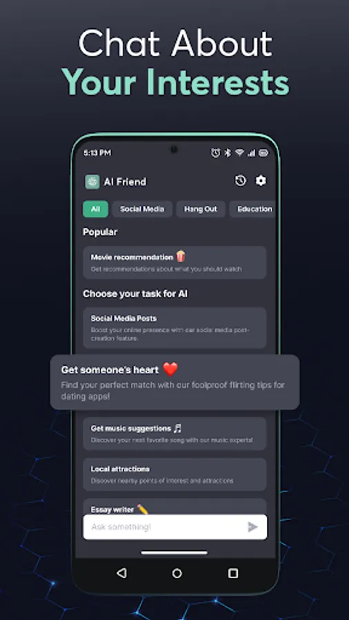 Not only is the AI Chatbot Smart, but it's also easy to use. You can start your AI chat off the bat. Smart AI Chat with a simple interface that lets you get down to chatting with AI right away. Just type your question, and the Smart AI Chatbot will provide a response here and now.