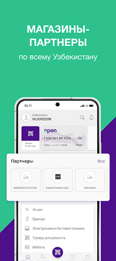 The Open installment network offers a wide range of goods and services, and you can indulge yourself with both small and large purchases worth up to 50 million soums.