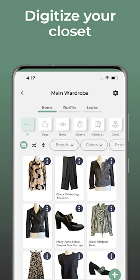 Snap a photo or upload an online photo of the wardrobe and our AI wardrobe organizer will remove the background and categorize it with details about the color, neckline, pattern, style & occasion, and similar details. All your digitized clothing is stored in the βWardrobeβ category of our closet organization app, and you can add as many pieces of clothing as you like.