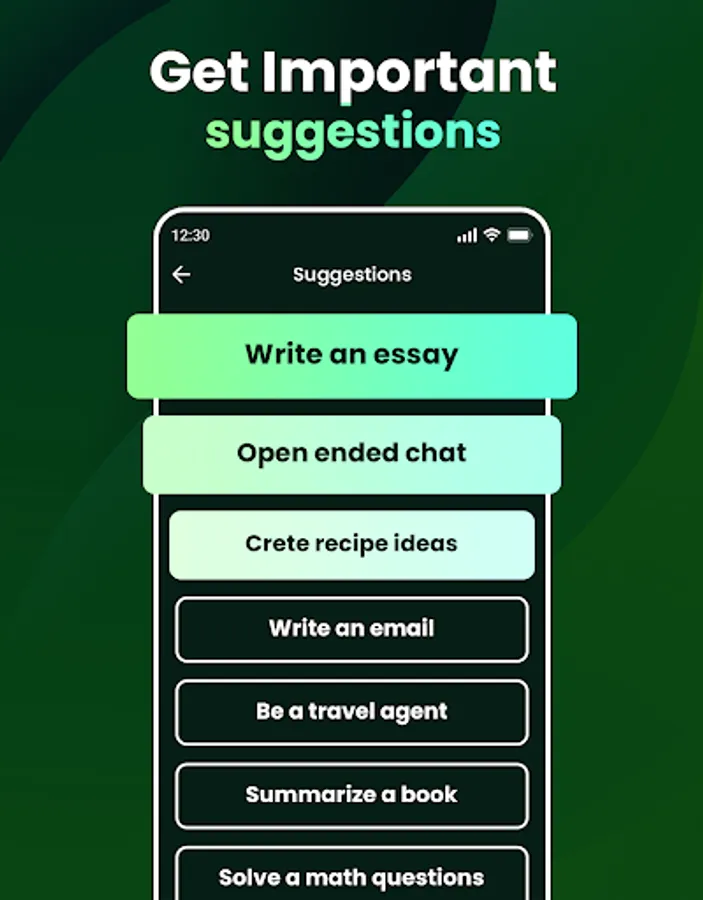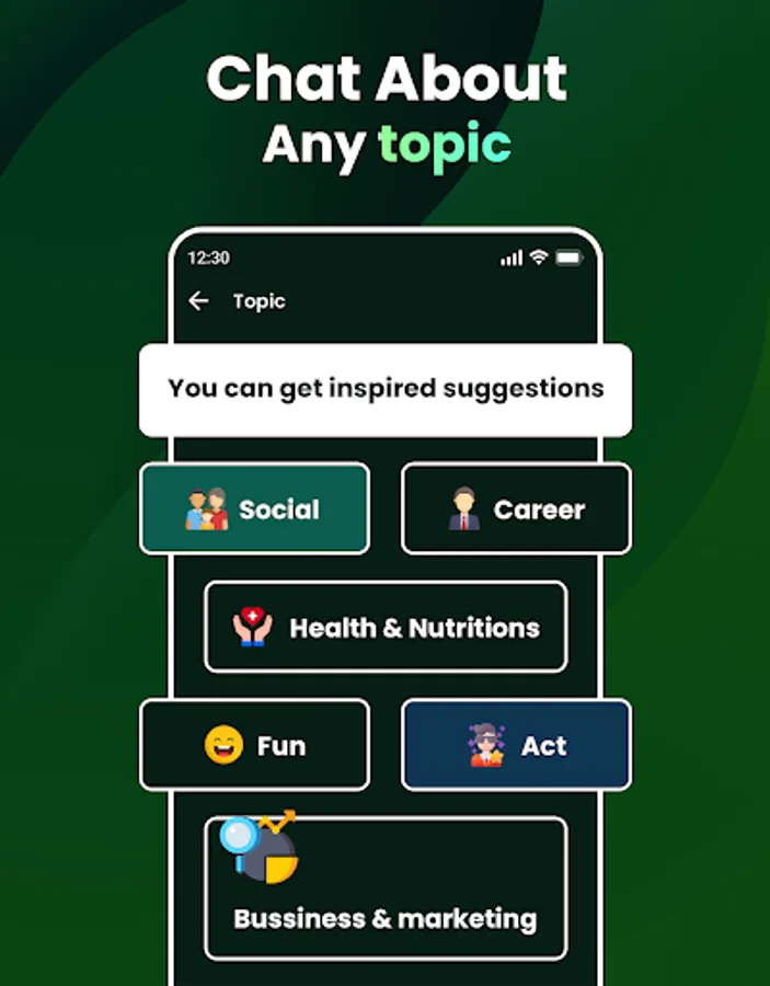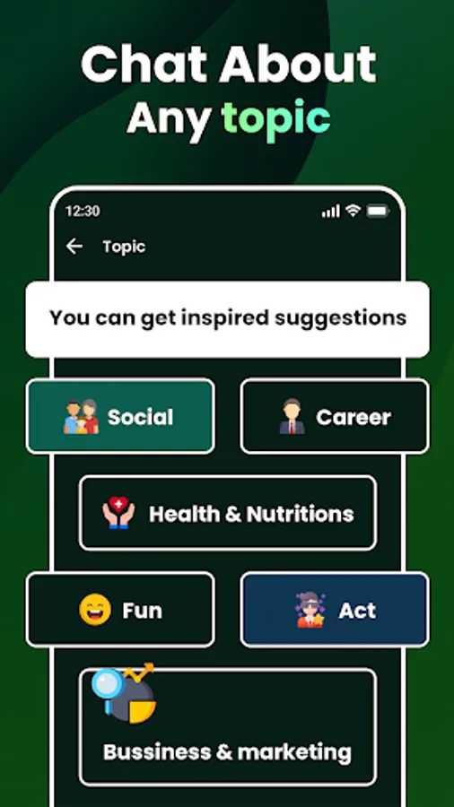 Our AI Chat Bot📱 covers a wide range of topics, ensuring that you never run out of things to ask. Whether it's about health🧑, education🧑🎓, fun, social interactions, business, career advice, or daily lifestyle tips, our chat bot has got you covered.Instant answers, a vast array of topics to explore, expert suggestions at your fingertips, creatively reshaped responses, and the ability to save answers for future reference.
