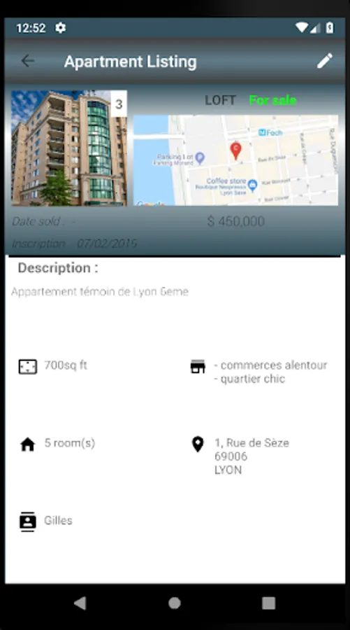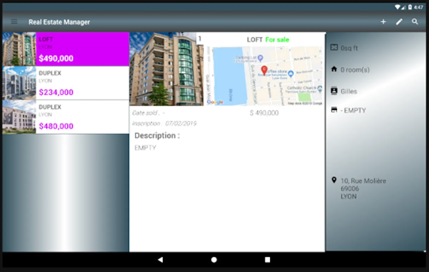 Allow to save in offline mode, in their internal database of apartments, with their description, location, price, number of rooms, ...